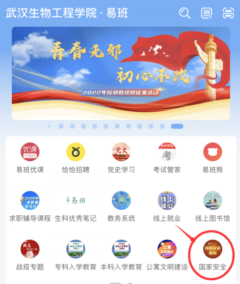 (二)组织师生开展线上国家安全普法宣传活动。即日起至4月16日,全校师生可通过易班APP首页点击“国家安全”图标或登录以下链接参与国家安全学习,并积极在评论留言区签名留言,写下你的国家安全教育学习感悟。链接地址:https://q.yiban.cn/app/index/appid/1433595,全校师生可通过线上互动获取易班定制小礼品.
