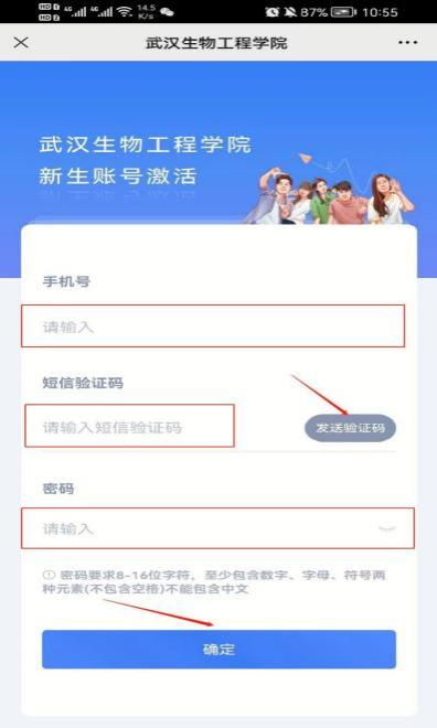第二步:登录后开始绑定手机号并设置个人密码,输入常用手机号码,点击【获取验证码】,将短信发送的验证码填入“短信验证码”一栏,按照密码设置规则在“设置密码”一栏输入个人密码后点击【确认】