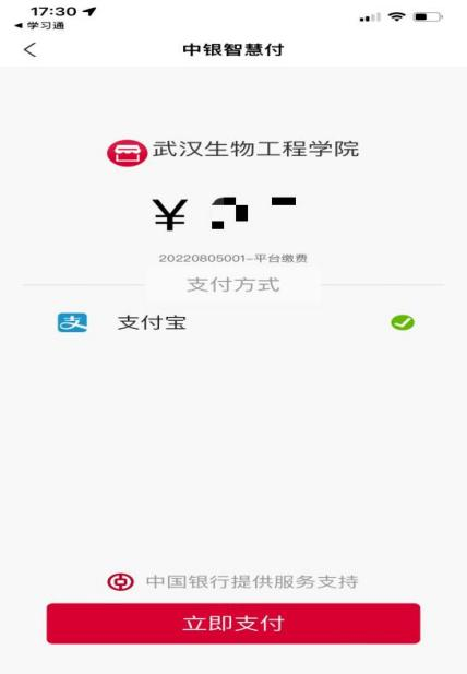 5.点击“确认支付”,核对缴费金额及学校名称,无误后点击“立即支付”。