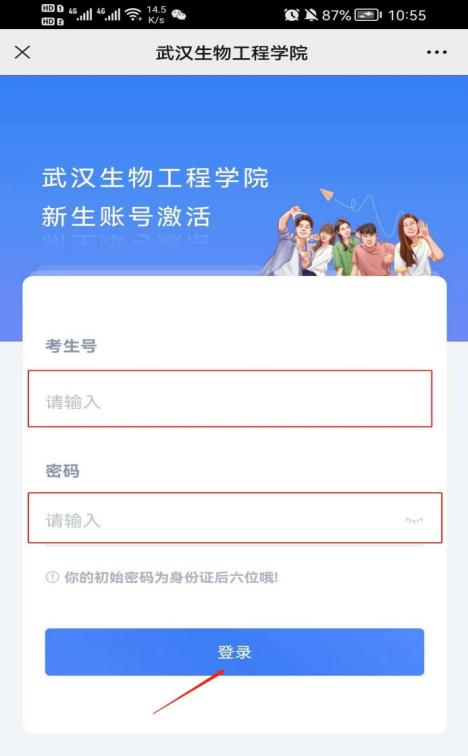 第一步:扫描二维码进入登录页面,按照账号、密码提示输入初始账号和密码后点击【登录】