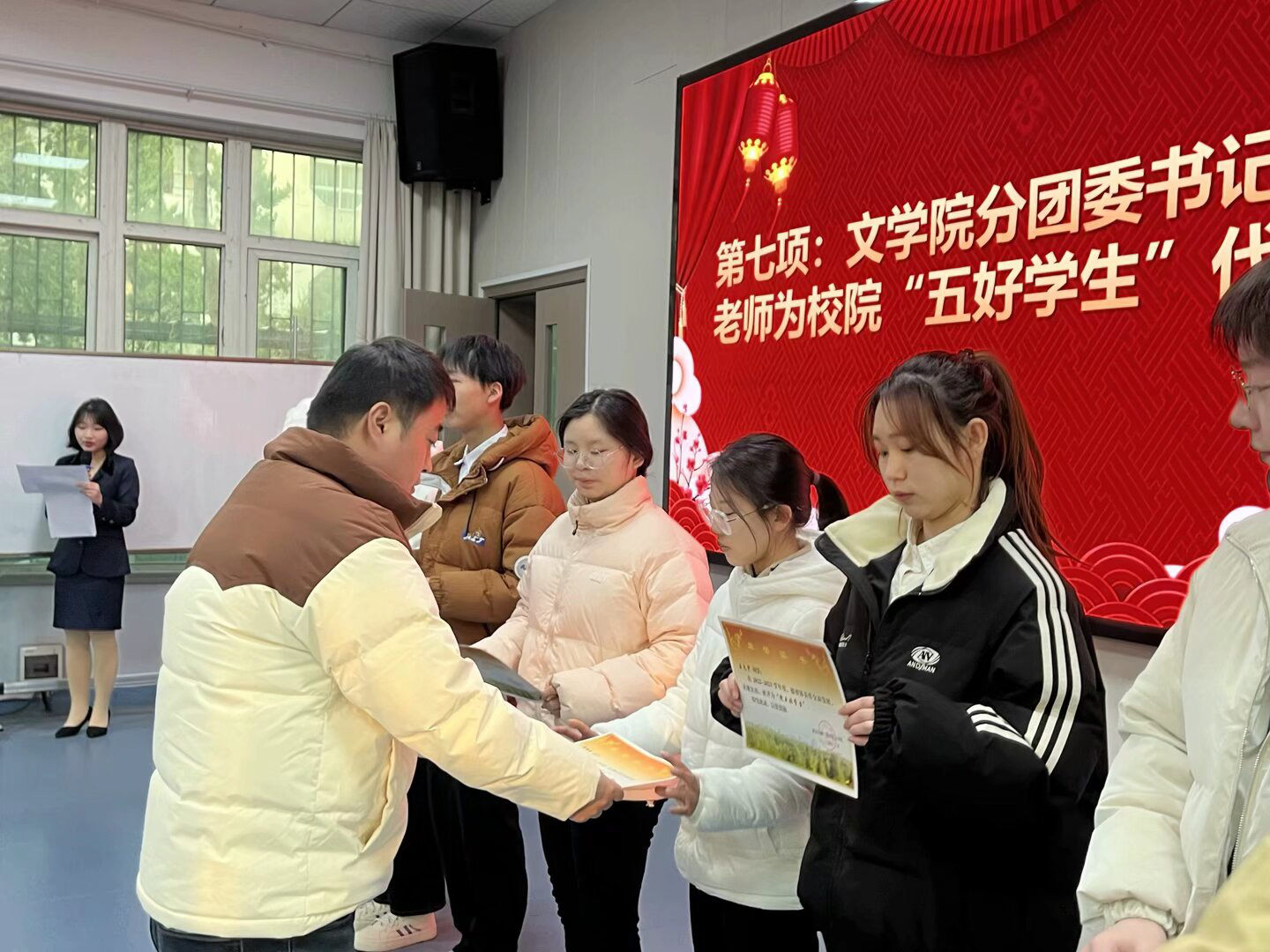 文学院分团委书记曹利凉为校院“五好学生”代表颁奖