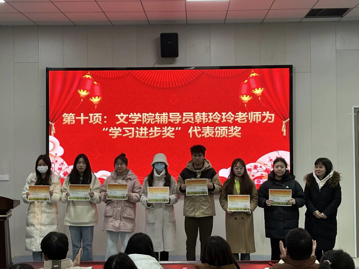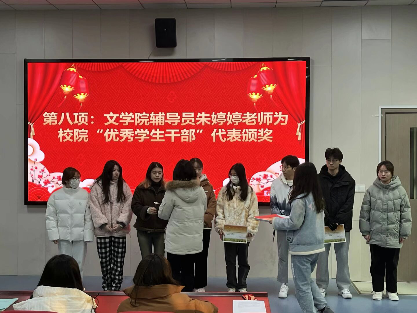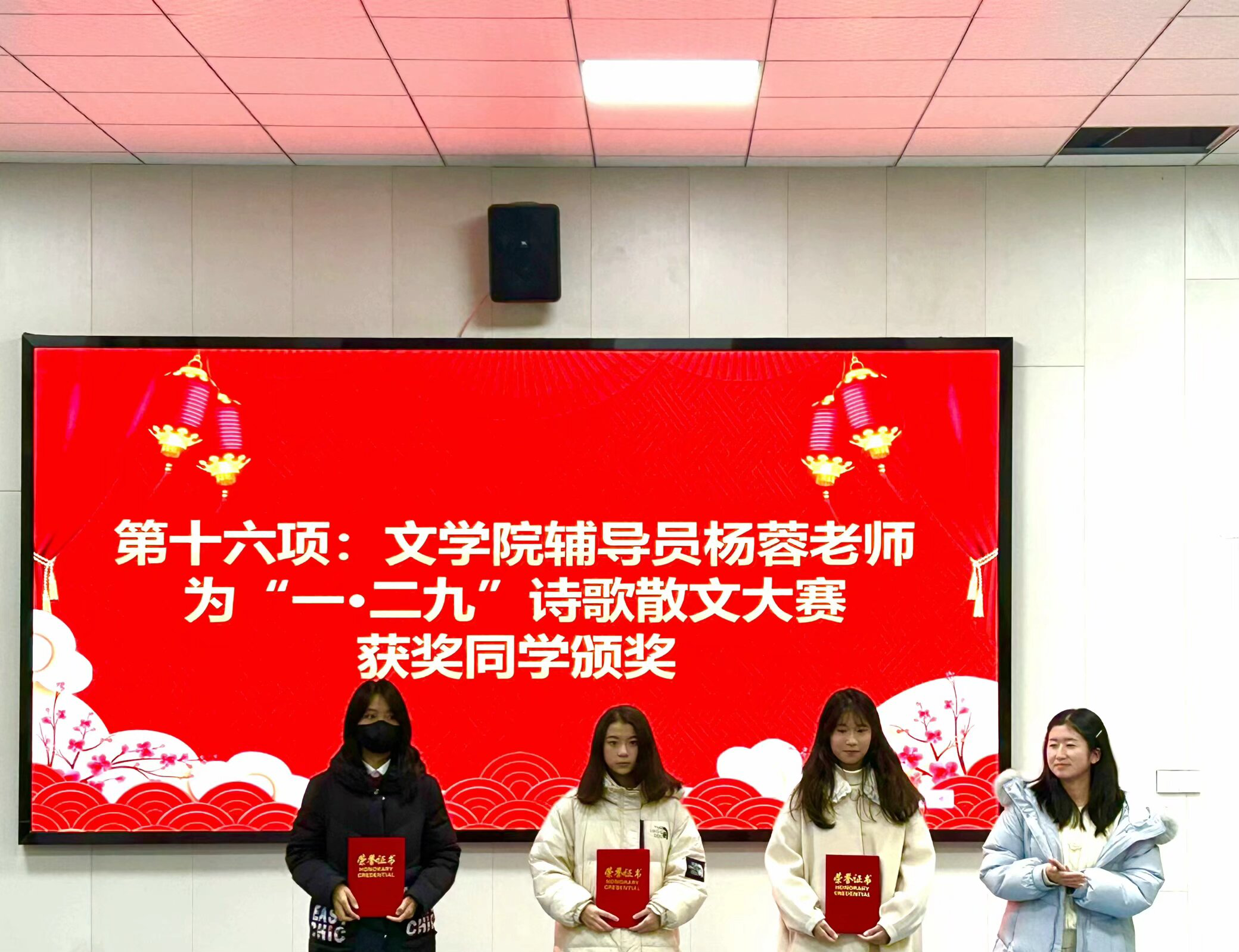 文学院辅导员为获奖学生代表颁奖