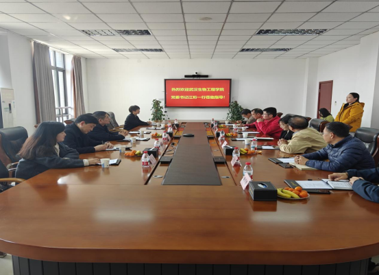 在武汉科前生物股份有限公司,江珩一行认真听取公司董事长、总经理陈慕琳关于企业的发展历程、核心业务、技术创新成果介绍,以及未来人才培养合作的规划与需求。