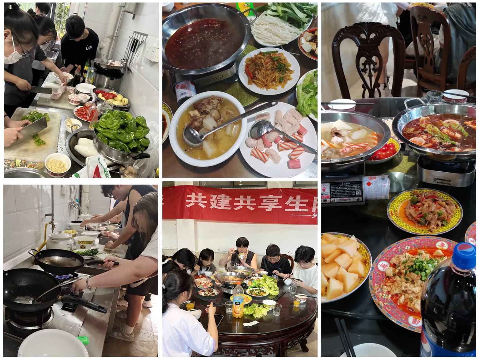 2023年4月21日,21级生工1班、生物技术1-2班全体同学相聚一堂,在生活艺术楼举办阳春宴。此次活动恰逢我校三十周年校庆。冬去春来,杨柳吐绿,同学们分工明确,干劲十足,积极投入到晚宴的工作中,彼此相互配合。在齐心协力下红烧肉、萝卜炖排骨、辣椒炒肉、清炒土豆丝、凉拌黄瓜,皮蛋拌拌豆腐等一系列美味佳肴摆上餐桌。