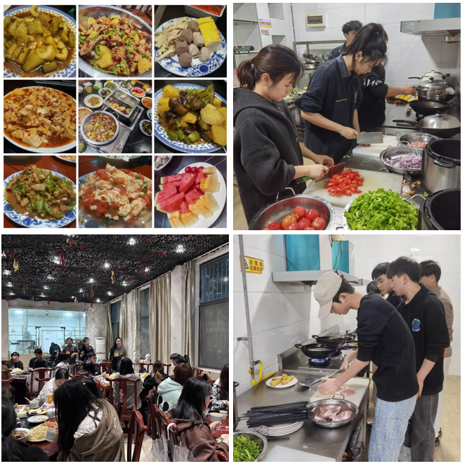今日份菜品:鸳鸯火锅,土豆烧鸡,酸辣土豆丝,番茄炒鸡蛋,烧椒皮蛋,皮蛋拌豆腐,青椒木耳炒肉,麻婆豆腐,地三鲜,蒜苔鸡杂、刀拍黄瓜……同学们大展身手,捧腹而归!饭后,同学们分工合作,以高标准要求完成清洁打扫工作。因为下雨,咱们从晒秋广场转移到了生活艺术楼,同学们却热情依旧!愿班级的每一位成员都能成为生活的强者,学习的强者!