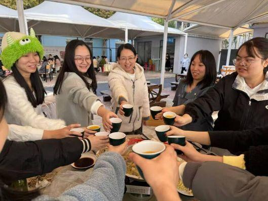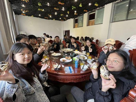 文学院党总支书记、常务副院长黄亚兰,党总支副书记袁宁、毕业班辅导员朱婷婷、专任教师雷小芳与同学们围坐在一起,共享美食盛宴,共话学校发展,共祝美好未来。准备期间,各小组分工合理,洗菜组、烧火做饭组、打扫卫生组、大家各司其职,火锅宴开展得有条不紊。当美味的胖头鱼火锅、红烧武昌鱼、新鲜肥美的大闸蟹端上桌时,每个人都有着满满的参与感与幸福感。宴席上,大家欢声笑语、其乐融融。各位同学纷纷表示,这次活动让他们感受到了学校、学院的温暖与关怀,感受到了30年校庆浓厚的氛围,衷心祝愿武生院越来越好,也因为自己是武生院学子而骄傲!