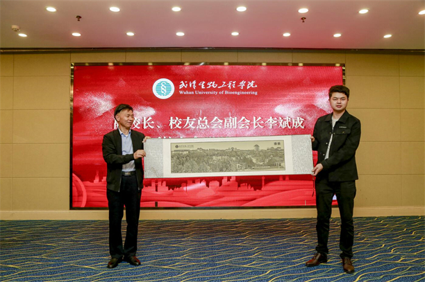 副校长、校友总会副会长李斌成为黄石校友会赠送皮雕画