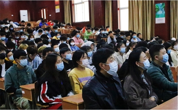 图为同学们聚精会神地聆听吴超校友反电诈报告