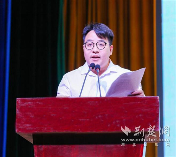 武汉生物工程学院2019届学生毕业典礼上,刘磊磊作为优秀校友代表受邀发言 通讯员供图