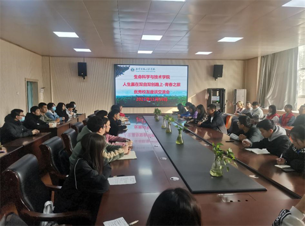 本网讯(通讯员 闫鹿)11月18日上午,生命科学与技术学院在一号教学楼东1310室举行了本学期第三场“人生赢在双自双创路上”青春之旅优秀校友座谈交流会,邀请学院2008届优秀校友、武汉森澜生物科技有限公司创办者、总经理菅保森与师生座谈交流。