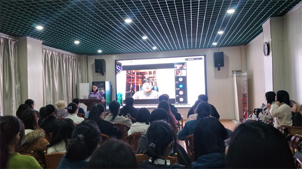 本网讯(通讯员 吴翔)11月25日晚,外国语学院在10号楼606会议室举办“人生赢在双自双创路上”青春之旅优秀校友报告会,学院特邀2010届优秀校友、武生院上海校友会副会长、上海市湖北省商会副会长马环做线上交流。外国语学院党总支副书记陈静、校友办副主任宋娟、学院校友工作联络员、学院全体新生及辅导员、各年级学生代表通过线上线下相结合方式共同参加此次会议。