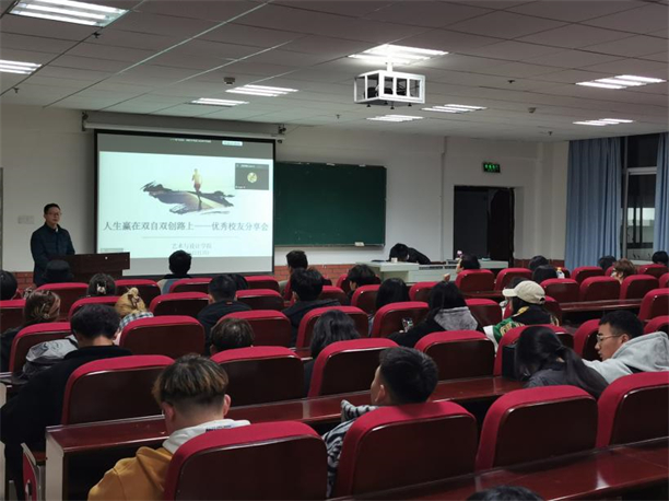 12月3日晚,我校“人生赢在双自双创路上——青春之旅优秀校友报告会”艺术与设计学院专场在钱学森大楼212会议室顺利召开,武汉辛逸创意文化发展有限公司总经理万彦辛、武汉轻工大学研究生李宇轩、武汉工程大学研究生王玉婷三位优秀校友主讲,校友办副主任宋娟、学院校友联络员老师李源、新生辅导员汪涛及400余名新生以先上线下相结合形式参加报告会,会议由学院党总支副书记陈海浪主持。