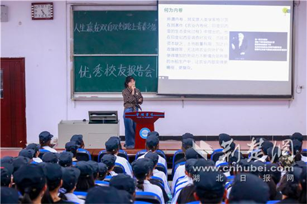 荆楚网(湖北日报网)讯(通讯员程晓璐黄敏 谈宇锋)为了帮助2021级新生更好地绘制“成长蓝图”,深化大学生职业生涯规划教育,10月6日,武汉生物工程学院管理学院·文学院组织开展了“人生赢在双自双创路上”——青春之旅优秀校友报告会,两位从该院毕业后一路读研读博的校友受邀回到母校,为学弟学妹们“传经送宝”,分享自己的成长经历和奋斗故事。
