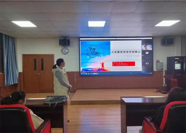 会上,孟顺校友以“人生赢在双自双创路上——精彩的大学蓝图”为主题,从“什么是大学”“他们的大学”“你们的大学”等方面为切入点,围绕军训、学习、劳动、兼职、生活、工作等角度,分享了个人心得。刘胜校友则以“脚踏实地,仰望星空”为主题,讲述了自己从初入校园略感迷茫,到找准目标奋发图强,再到荣誉满满求学深造的个人经历,给新生做了精彩报告。