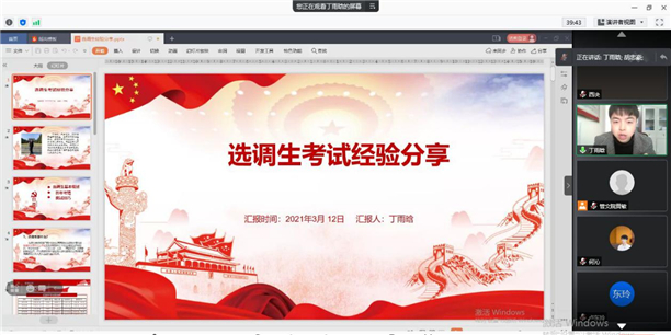 本网讯(通讯员 周晚霞 张晶)为进一步让2021届应届毕业生清晰了解公职考试特点,熟悉公职考试考情政策和考试科目,增强备考信心,近日,管理学校·文学院利用腾讯会议平台开展了一场公职类考试备考指导专题培训,管理学院·文学院教师周健、2020届财务管理专业校友丁雨晗担任主讲,学院2021届意向考公学生参加会议。