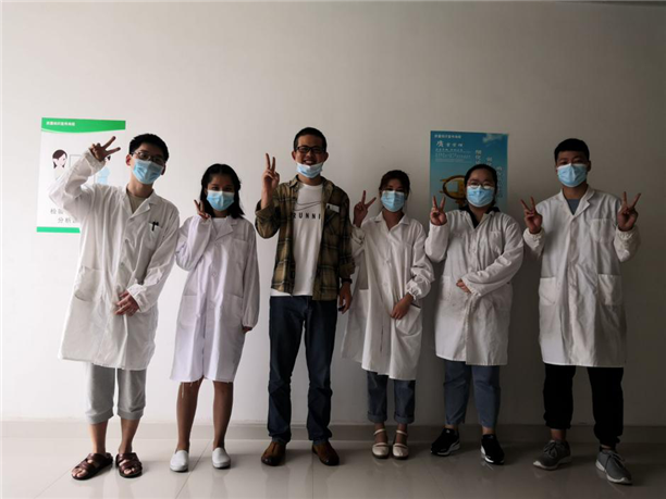 图为医药学院院长助理尤园与在马应龙药业工作的校友们合影