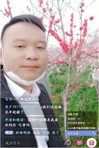 直播过程中,许泽坦校友带领大家“云”观赏了其创业基地“十里桃林”,一片花海映入眼帘,看到满屏桃花时,评论区顿时沸腾了起来,仿佛能透过屏幕嗅到淡淡的花香。随后,许泽坦校友针对桃树品种的选择、冬夏两季修剪的异同、如何实行高接换种、电商营销团队的组建等问题,分享了自己的经验和心得。