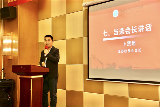 江苏校友会会长卜贤超在发言中表示,母校建校以来为国家培养了数万优秀学子,有造福一方的人民公仆,有独挡一面的社会栋梁,还有很多社会各领域的专家学者。多年来,校友们潜心耕耘在各自岗位,用实际行动表达对母校的深情厚谊。江苏校友会的成立,对于增进校友之间的合作与交流,加强各地校友之间的联系与友谊,弘扬和传承武汉生物工程学院的优良传统有着十分重要的意义。