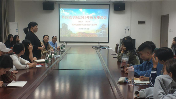 11月12日晚,外国语学院在十号楼412会议室召开了优秀校友交流分享会,学院副院长辛凌、院长助理李汉平出席了会议,学院党总支副书记谢红林主持。