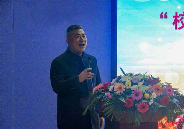 捐赠校友代表许泽坦、重庆校友会副会长孙健分别代表2019年度“校友公益之星”个人、集体发言,他们深情回忆了自己与武生院的“不解之缘”,号召各位校友在工作生活中和母校紧密联系,共同壮大发展,把校友会资源管理好、运营好,将校友会打造成校友们沟通的桥梁,致富的渠道,宣传的名片。