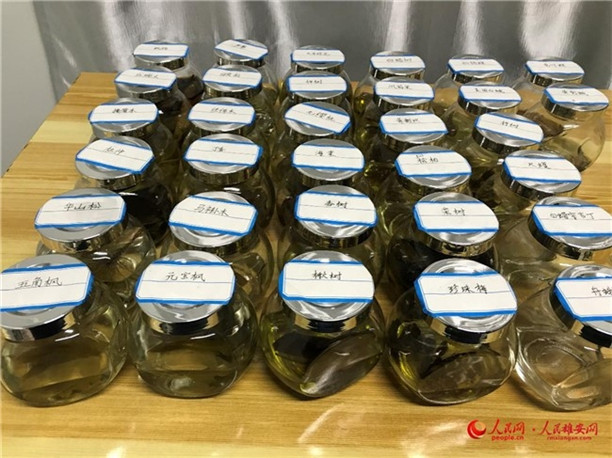 在朱会营的办公桌上,还摆放着将近60瓶树种标本。“我一直把工作当做乐趣,希望能把自身掌握的技能应用于雄安的建设,这些内容连续做下去的话,对雄安来讲可能是最接地气的资料,这就是我的作战图。”朱会营向记者介绍,他将分布在大清河片林不容易区分的植物做成标本,方便快速识别。