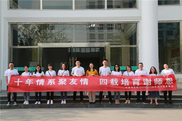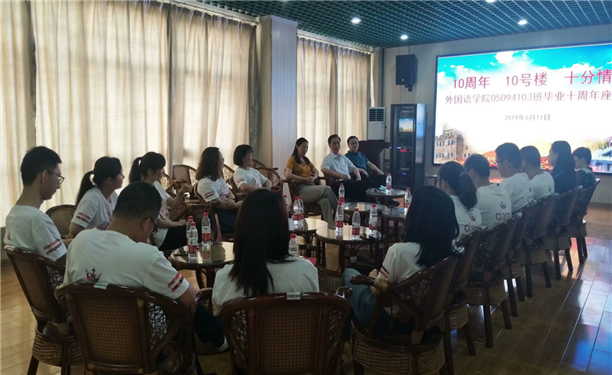 (通讯员 林莎莎 吴翔)5月11日,外国语学院05级英语本科三班十余名校友从全国各地汇聚母校,开展“10周年,10号楼,十分情谊”主题毕业聚会活动。出席活动的有外国语学院院长张维友教授、党总支书记谭学锋、党总支副书记谢红林,校友办副主任宋娟,学院教师代表郭漫及在校生代表。