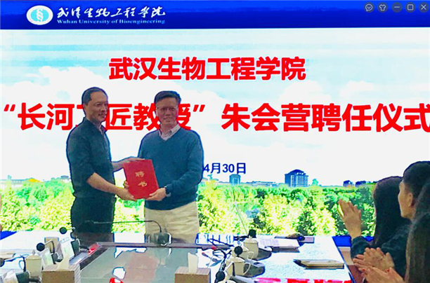 图为副校长李毅为朱会营颁发“长河工匠教授”聘任证书