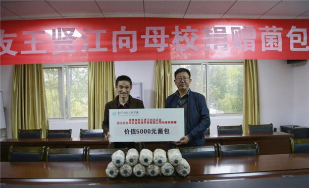王贤江校友表示,感谢母校一直以来对自己的关心和支持,捐赠这批菌包,主要是想让学弟学妹们在实践学习中深入了解食用菌生长过程,增强动手能力,明确食用菌类在大农业中的地位和作用。