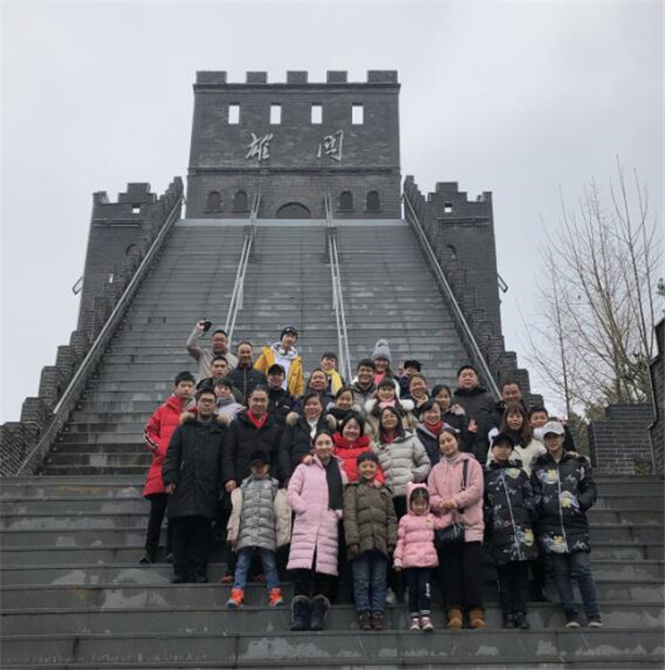 图为校友们登上校园长城雄关