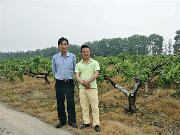 桃园相会其乐融融。余毅、赵正洲代表武生院感谢许先平、许泽坦父子近期为武生院捐建一座“仙桃园”,并询问了许教授目前科研、生产、产业经营等方面的具体情况。许先平教授对武生院领导教师的到来表示热烈欢迎。他首先介绍了仙桃桃树种质资源圃(仙桃桃树博览园)建设的基本情况和未来的发展方向。据了解,该种质资源圃占地面积60余亩,将种植并展示许教授积累30多年的桃树品种资源400余份。在“十里桃林”产业园中,许先平向余毅理事长一行介绍了江汉平原桃树建园及周年标准化栽培技术,并现场演示了去年桃树嫁接换种的跟进管理等工作。