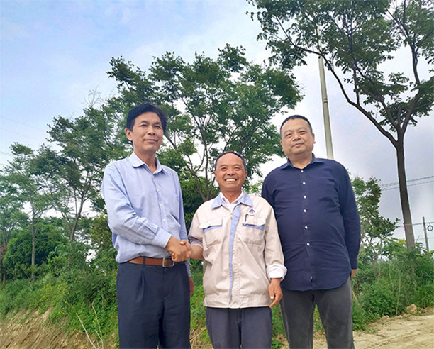 图为在仙桃种植园,余毅(左)勉励校友许泽坦(右)不忘初心、创新创业