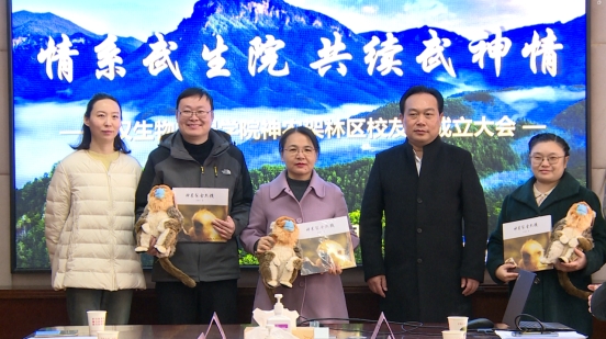 陈明副区长向武生院教师赠送神农架金丝猴吉祥物