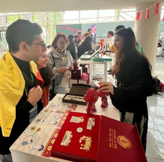 在3月4日的文创产品展销会上,王旭还将我校吾生缘文创产品——“生院印象”冰箱贴在现场展出,这款以钱学森纪念馆、雄关、风华书院、图书馆和校徽为主题设计的冰箱贴文创产品,吸引了各国青年代表的关注及喜爱。