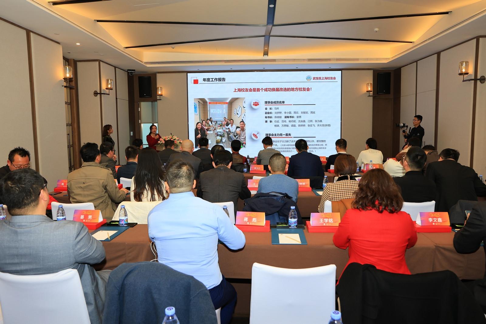 上海校友会秘书长陈晓敏代表上海校友会理事会作了上海校友会2023年度工作报告。陈晓敏介绍,武生院上海校友会自成立以来,始终秉承“汇聚上海,共享吾生”为发展理念,致力于为广大校友打造一个发展互助、交流协作的平台。在第一届会长周云会长和第二届会长马环会长的带领下,在校友会全体理事的共同努力下,武生院上海校友会取得了丰硕的成果和长足的发展;五年期间,上海校友会助力众多校友企业达成数百项合作,发掘了一大批奋战各行各业的优秀校友典型,邀请了多位校友企业家返校向学弟学妹分享经验,组织了一系列校庆主题活动,实现了第二届理事会的平稳换届,促使2023年各项工作取得多项突破。