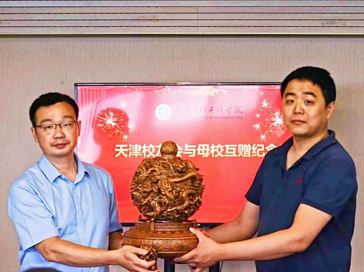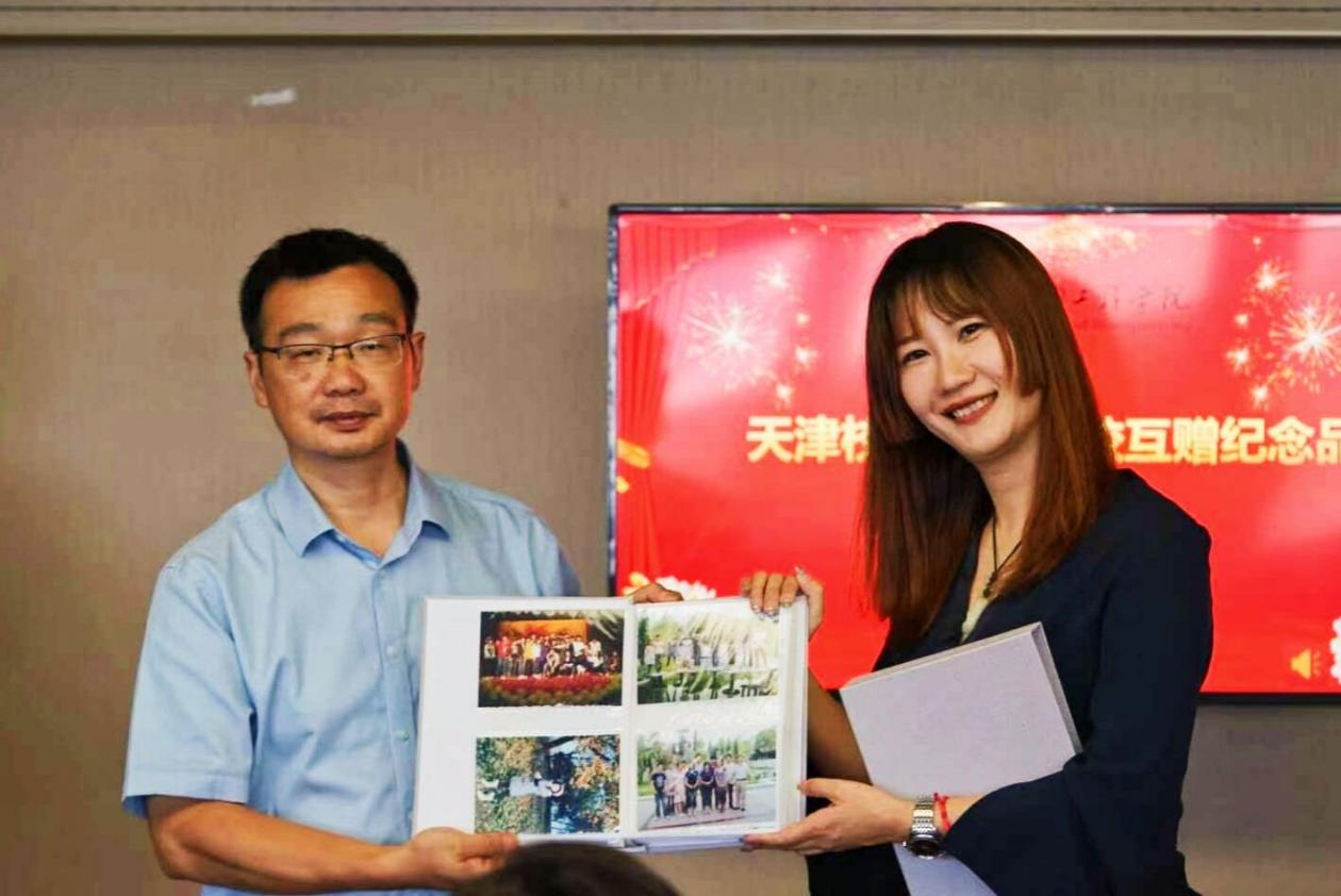 校友办参事员洪斌代表学校与天津校友会互赠纪念品