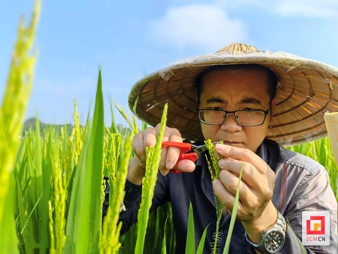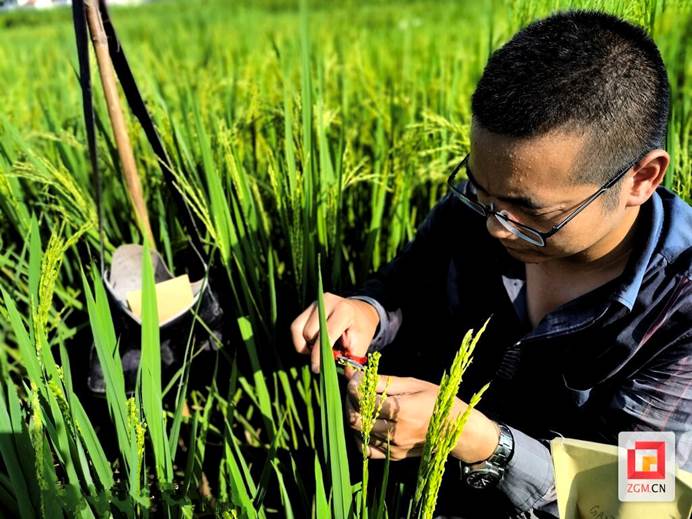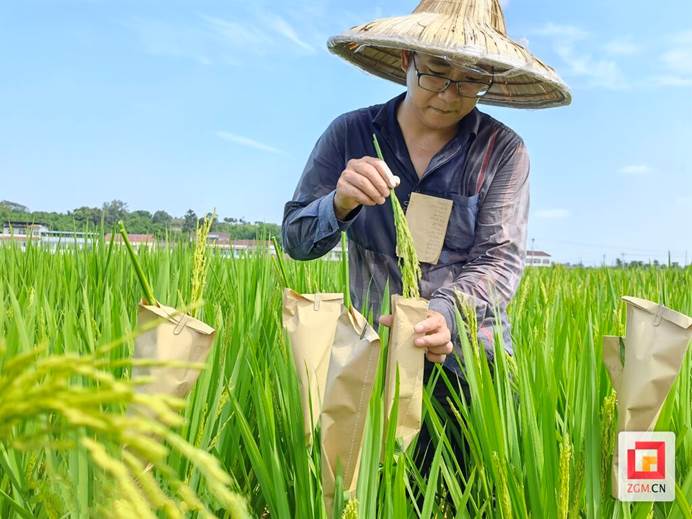 “水稻科研工作很具体,特别是杂交试验要在一年中最热的季节、一天中最热的时候来做。”6月17日上午,当记者在位于自贡市大安区何市镇的自贡农科院粮作研究所试验基地遇到鄢圣敏的时候,他正辗转于实验室和试验田之间,选穗、剪颖、去雄、套袋、授粉、封口、记录……一个人、一支笔、一个本子、两条腿,是他的标准配置。