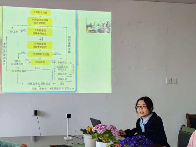 会上,青年教师饶杨、杨艺涛和优秀校友刘名归(2023届毕业生)分析了当前考研复试的形势,并介绍了研究生复试的面试流程和各自的备考经验。他们谈到,考研学生要认真准备简历,面试着装要端庄得体,面试中要勇于展示自身特长,对待问题更要实事求是。同时,他们也鼓励同学们,放平心态、相信自己、不到最后一刻绝不放弃,并祝愿大家最终都能考上心仪的学校!会议答疑环节,同学们就自己在筹备考研面试中存在的一些问题踊跃向在场老师请教,老师们耐心地一一解答并给出建议,现场气氛十分活跃。