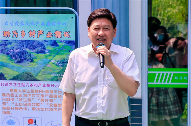 校党委书记江珩在致辞中指出,学校按照“产学研用协同创新融合发展”的理念,积极推进高素质应用型人才培养,结合学校办学特色,依托国家级众创空间、省级大众创业万众创新示范基地、省级“问天筑梦”青创园等育人平台,积极构建了武生院农文旅产品展销中心。接下来,武生院农文旅产品展销中心将充分发挥高校知识、技术、人才等方面优势,强化创新驱动推动高质量内涵式发展,为乡村振兴战略作出应有贡献。