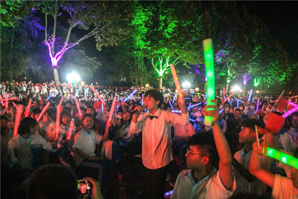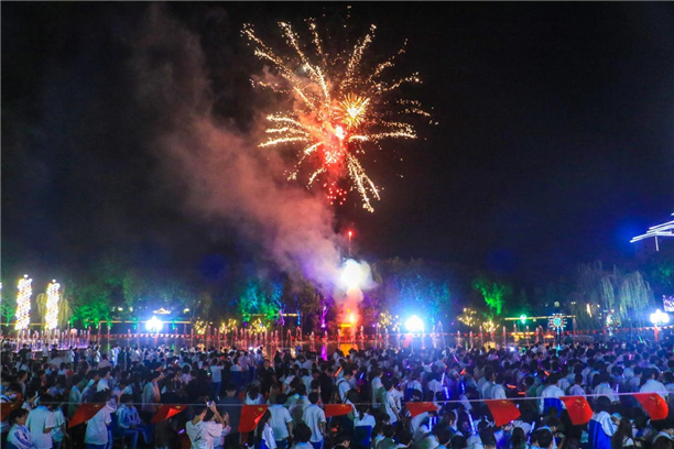 (记者 叶涛 摄影 陈冲 谈宇锋 夏新元)“请党放心 强国有我。”9月29日晚,一场别开生面的“庆国庆·迎新生”文艺晚会在晨光湖景区、问天湖景区、学府广场、健源体育场、健源多功能舞场等校园网红打卡地盛大启幕。伴随着《在希望的田野上》的歌声,绚烂的焰火点亮了夜空,万余名师生一起用歌声、舞蹈、朗诵等展现青春风采,为中华人民共和国72周年华诞送上真诚祝福。