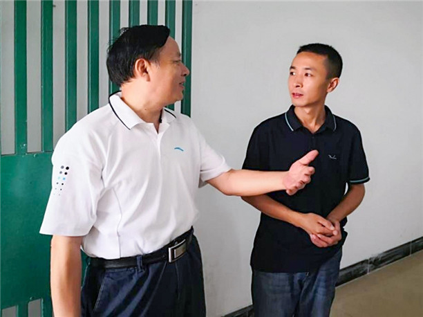 图为副校长陈年友教授(左)在课后与化学与环境工程学院李耀仓老师就教学方法等进行深入交流