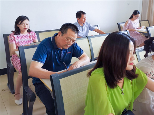 图为在管理学院成张帆老师的《战略管理》课上,代校长赵正洲教授(中排)认真做笔记