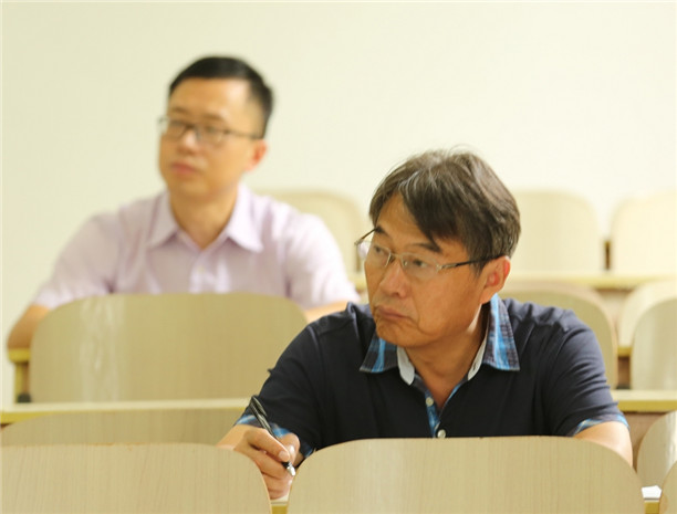 图为在园林园艺学院姚成义老师的《园林苗圃学》课上,副校长邱建洲(后排左一)专注聆听