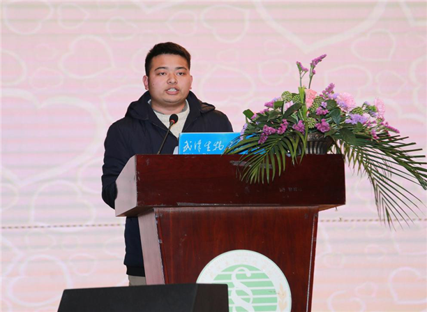 图为校级“三全育人”先进标兵、校团委副书记骆群曙以“生院情 青春梦”为题讲述了“实践育人”故事