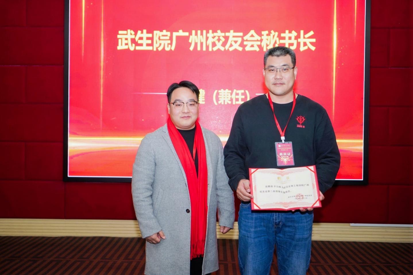 本网讯(通讯员 龚文翰 广州校友会)近日,广州校友会第二届一次会员代表大会暨2025年联欢盛会在东莞莞城瑞景酒店举行,70余名来自广东各地的校友代表与嘉宾,以及深圳、上海、生物医药行业校友会代表齐聚一堂,共襄盛举。学校校友办参事员、医药学院常务副院长黄帅,生命科学与技术学院副院长刘磊磊代表武汉生物工程学院校友总会专程参会。会议由羊城晚报记者龚泽儒校友主持。