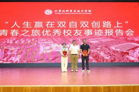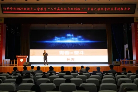 本网讯(通讯员 罗蓉萍)为充分发挥优秀校友榜样引领作用,激发2025级新生坚定理想信念,培养自立自强品格,提升创新创业意识,增强爱校荣校情怀。9月16日下午,计算机科学与技术学院在学校创新创业大讲堂为2025级新生举办以“人生赢在双自双创路上”为主题的青春之旅优秀校友事迹报告会。报告会围绕“双自双创”核心,为初入校园的新生搭建理论与实践的桥梁,帮助其快速适应大学学习生活,提前规划职业生涯。两位深耕行业多年的校友鲁润芬、钟海重返母校,结合自身创业历程与行业洞察,为2025级新生送上入学“礼物”,助力新生明确专业发展路径。学院部分党政领导班子,新生辅导员以及2025级新生连队全体参会。