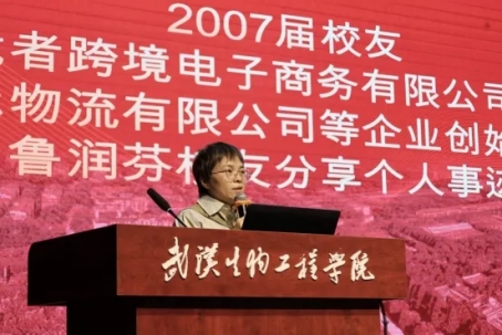 分享环节中,2007届电子商务专业校友鲁润芬率先发言。她坦诚回顾了自身创业历程:毕业后首次创业遭遇挫折,却未被困难击退,转而从客服岗位积累经验,凭借对跨境电商行业趋势的精准判断,最终创办惠州市优者跨境电子商务与速邦国际物流等5家企业,助力300余家企业实现上亿营收的创业历程。她不仅分享了“从失败到成功”的创业感悟,还聚焦亚马逊平台运营,从选品逻辑、物流管理到客户服务,拆解实操策略,为有创业意向的新生提供了可参考的实践方案。