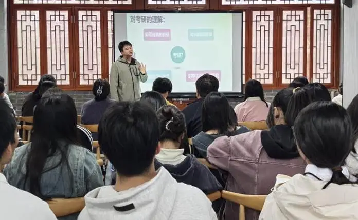 分享会结束后,互动交流环节气氛热烈。大家围绕“专业课难点突破”“科研经历如何赋能考研复试”等具体问题积极提问,胡玮航逐一耐心细致地解答。通过本次经验分享会,不仅传递了实用的备考方法与技巧,更注入了积极备考的信心与动力,为学子们的考研之路提供了有力支撑。