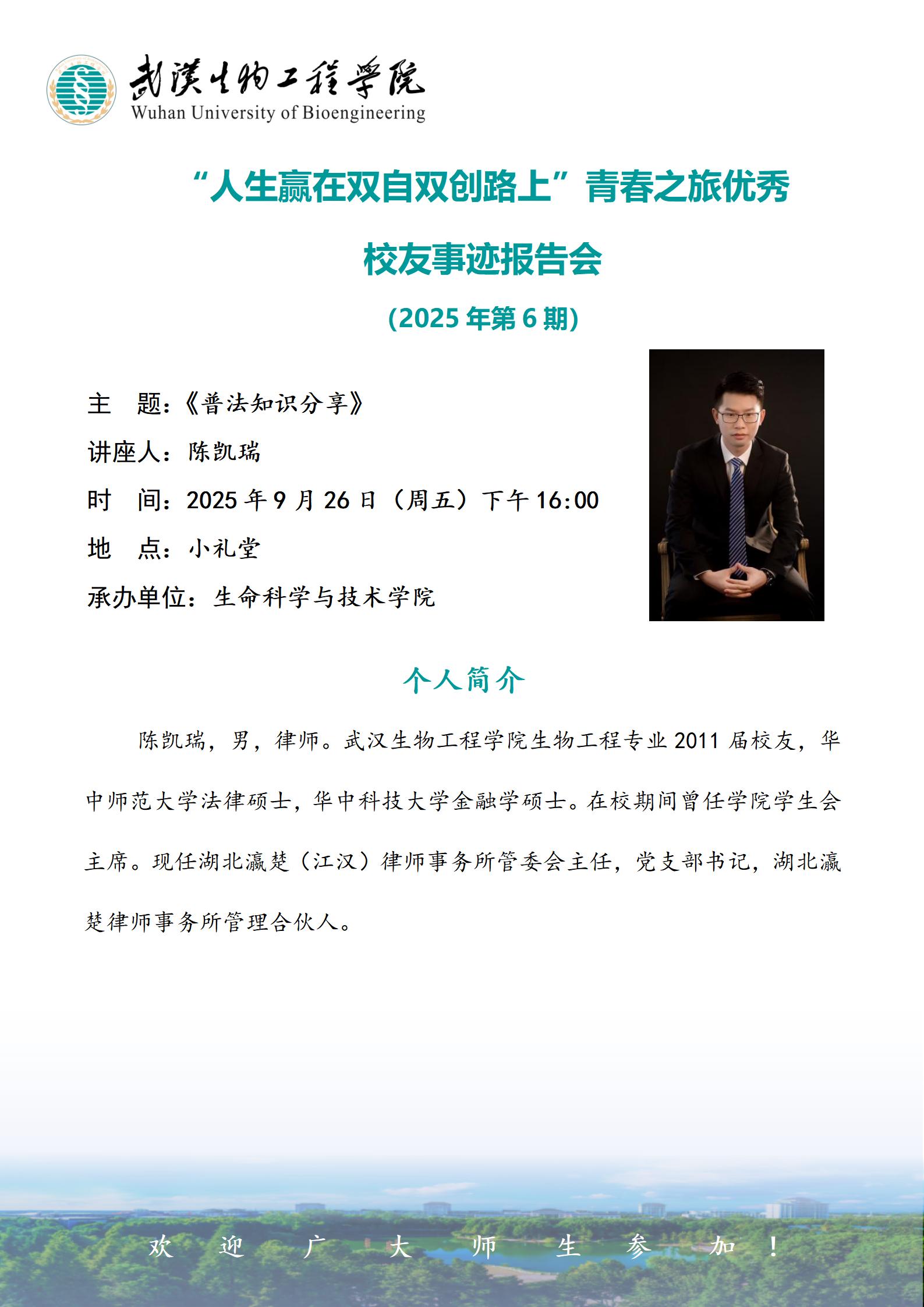 【双自双创】陈凯瑞作题为“普法知识分享”优秀校友事迹报告会的预告