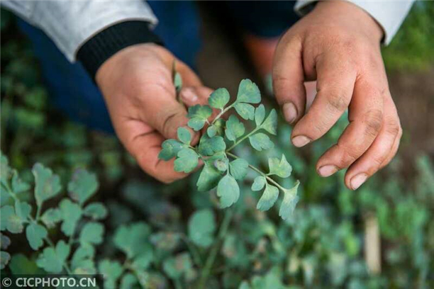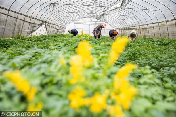 2020年11月3日,村民在贵州省毕节市大方县鼎新乡长丰村大棚里对岩黄连进行管理。CICPHOTO/罗大富 摄