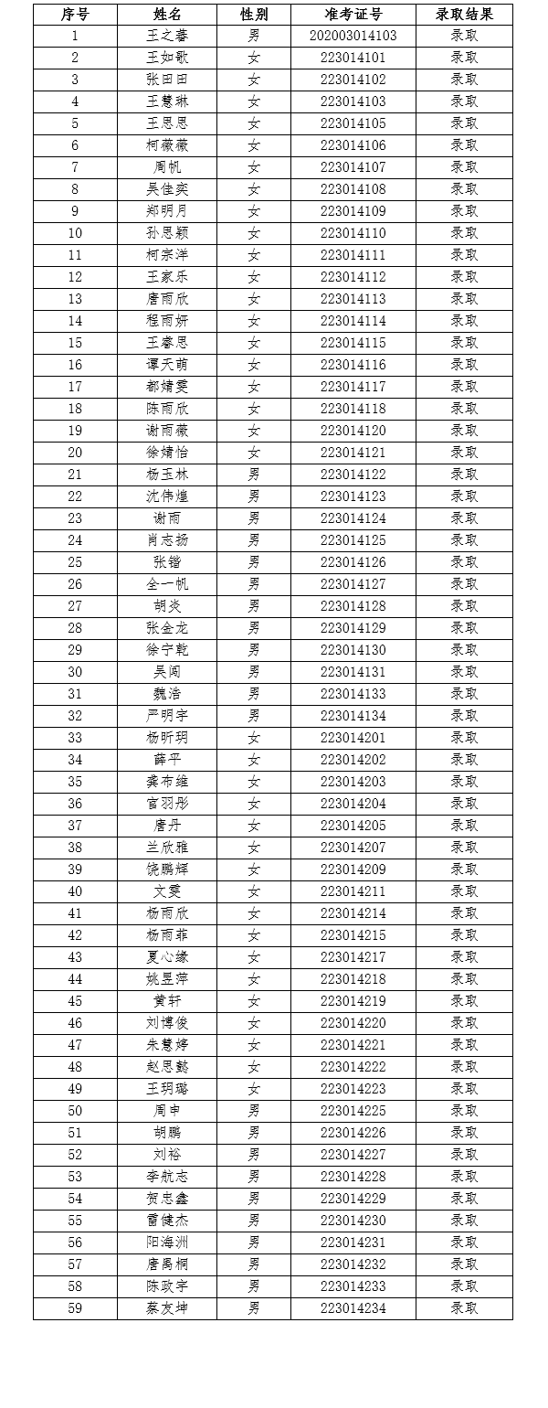 根据《省教育厅关于进一步提高普通本科高校与高职院校联合培养技术技能型人才质量的指导意见》(鄂教高〔2018〕1号)、《武汉生物工程学院关于报送制药工程专业、园林专业湖北省“3+2”联合培养试点项目转段考核方案等材料的报告》,经学校组织转段考核后,按成绩排名,现将拟录取名单予以公示。